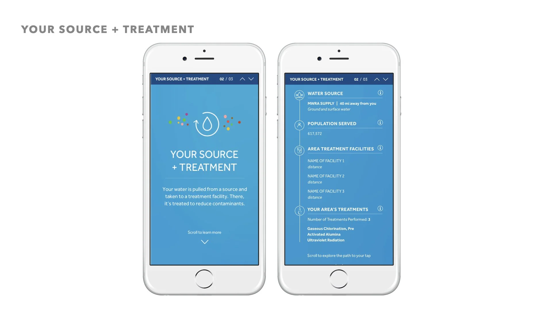 In this section users can learn more about what treatment facility their water goes through, and what that treatment facility is designed to remove.