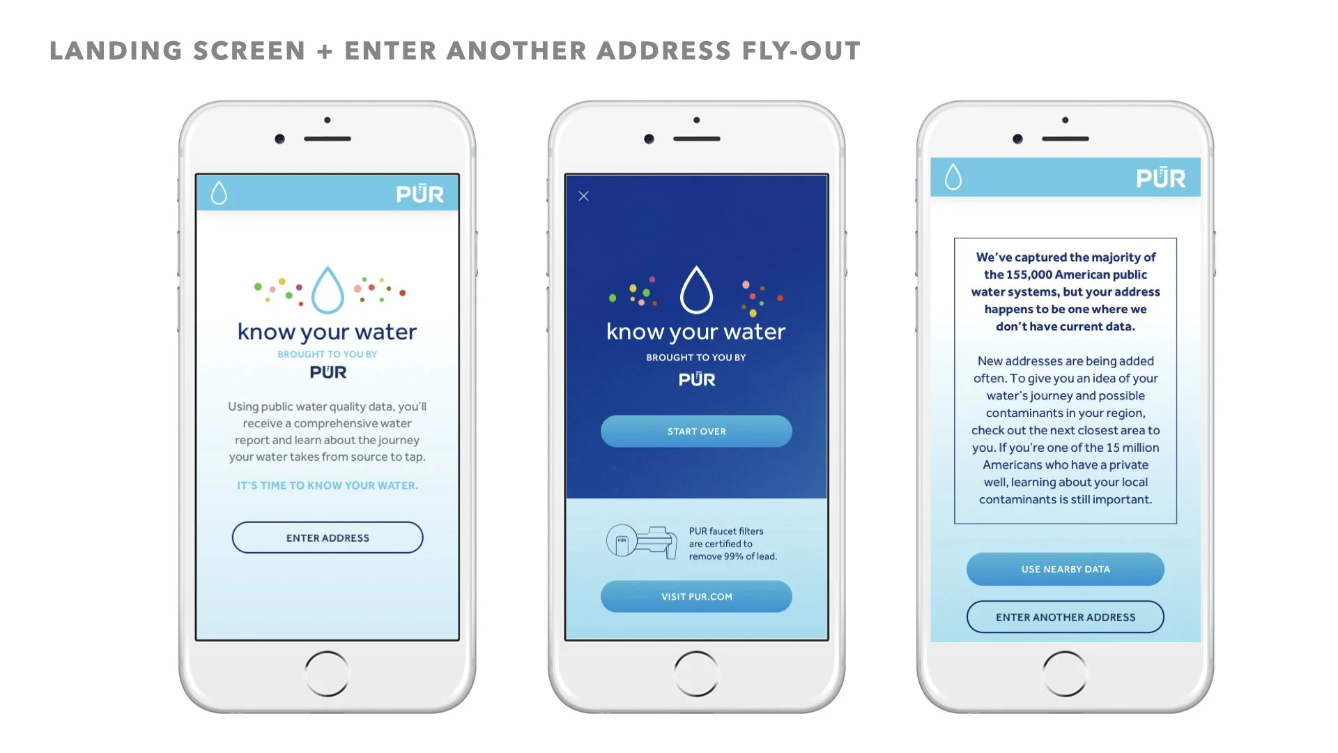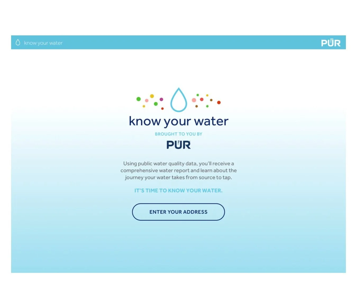 The first Know Your Water experience was using WebGL animation - user testing feedback convinced the client that a redesign was in order if they were to improve engagement and CTR.